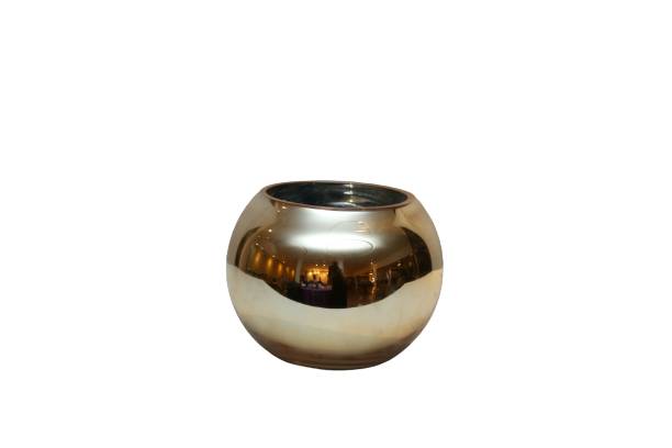 Vaso Cachepot redondo médio de vidro dourado espelhado