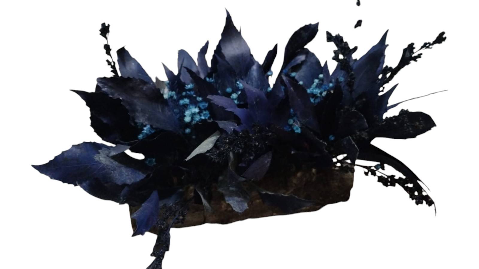 Jardineira artificial de flores azuis decorativo