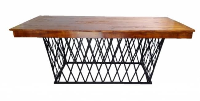 Mesa rústica de Madeira retangular Pé de Ferro Treliça