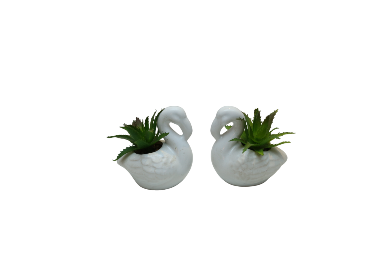 Par de Vaso Suculenta Pássaro Pequeno Cerâmica com Planta Artificial